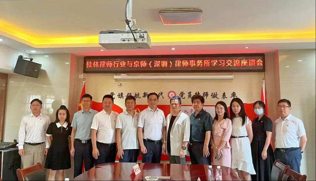 7月15日,京師深圳律所第十二黨支部書記吳升展同志帶隊,先后與桂林電子科技大學(xué)法學(xué)院黨委、廣西大海律師事務(wù)所黨支部開展黨建聯(lián)建結(jié)對共建座談會,就各方合作與發(fā)展展開深入探討。...