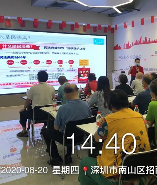2020年8月20日,花果山社區(qū)黨委、花果山社區(qū)黨群服務中心主辦,南山區(qū)社區(qū)治理與服務創(chuàng)新促進會承辦“骨干燎原計劃——《民法典》解讀”活動,京師深圳投資銀行法律事務部副主任李永蘭...