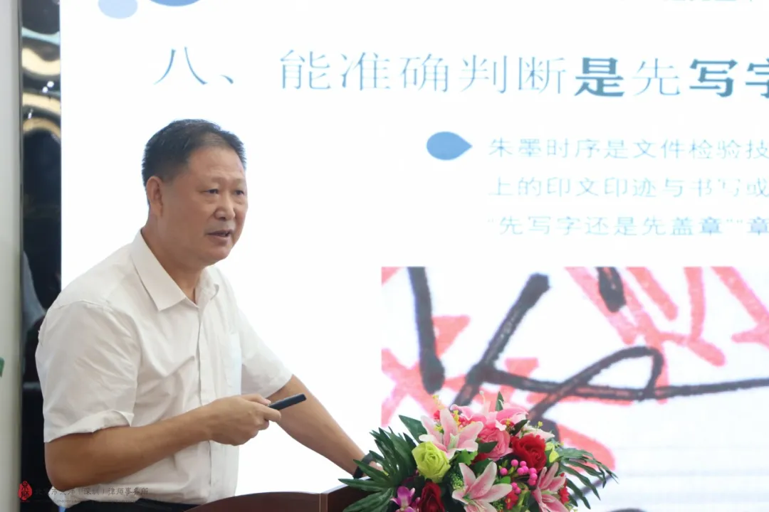 文檢鑒定人、高級工程師宋國奇從文件檢驗的十個問題出發(fā),向參會人員介紹了文書鑒定包含的內(nèi)容、技術(shù)設(shè)備、檢驗原理、檢驗材料等內(nèi)容。同時,他對不同筆跡特征進(jìn)行分析,為大家詳細(xì)介紹了朱墨時序原理、文書鑒定的委托受理的具體要求以及鑒定用途。宋國奇老師強(qiáng)調(diào),文書檢驗標(biāo)準(zhǔn)存在結(jié)論的多樣性,影響筆記變化的因素較多,可能導(dǎo)致同一份筆跡檢驗鑒定出不同結(jié)論。