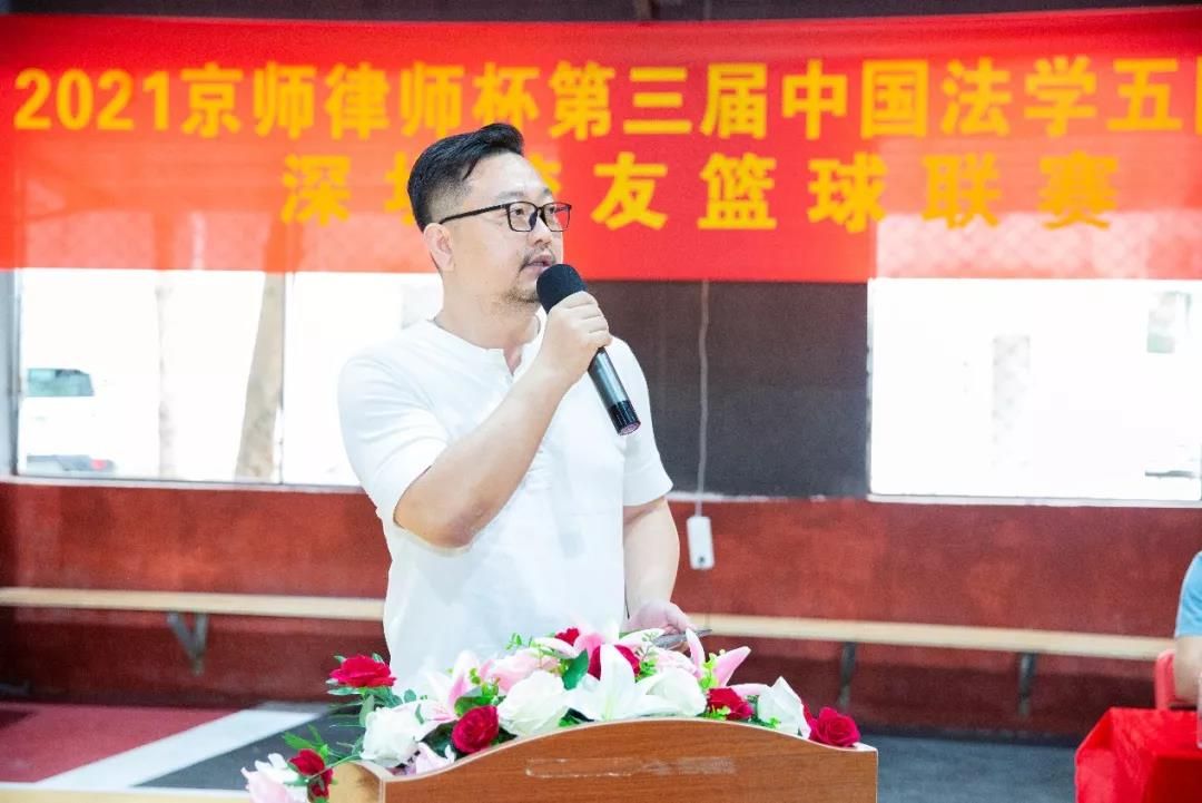朱斌先生致辭,他表示“五院四系”籃球聯(lián)賽已經(jīng)成為深圳法律人的“品牌”和“名片”,籃球運(yùn)動(dòng)講究團(tuán)隊(duì)協(xié)同、一體化安排和戰(zhàn)術(shù)實(shí)施,通過(guò)籃球運(yùn)動(dòng)法律人可以從中獲益良多,并祝愿本次籃球聯(lián)賽能夠堅(jiān)持法治理念,堅(jiān)持法治精神,賽出友誼賽出風(fēng)采。
