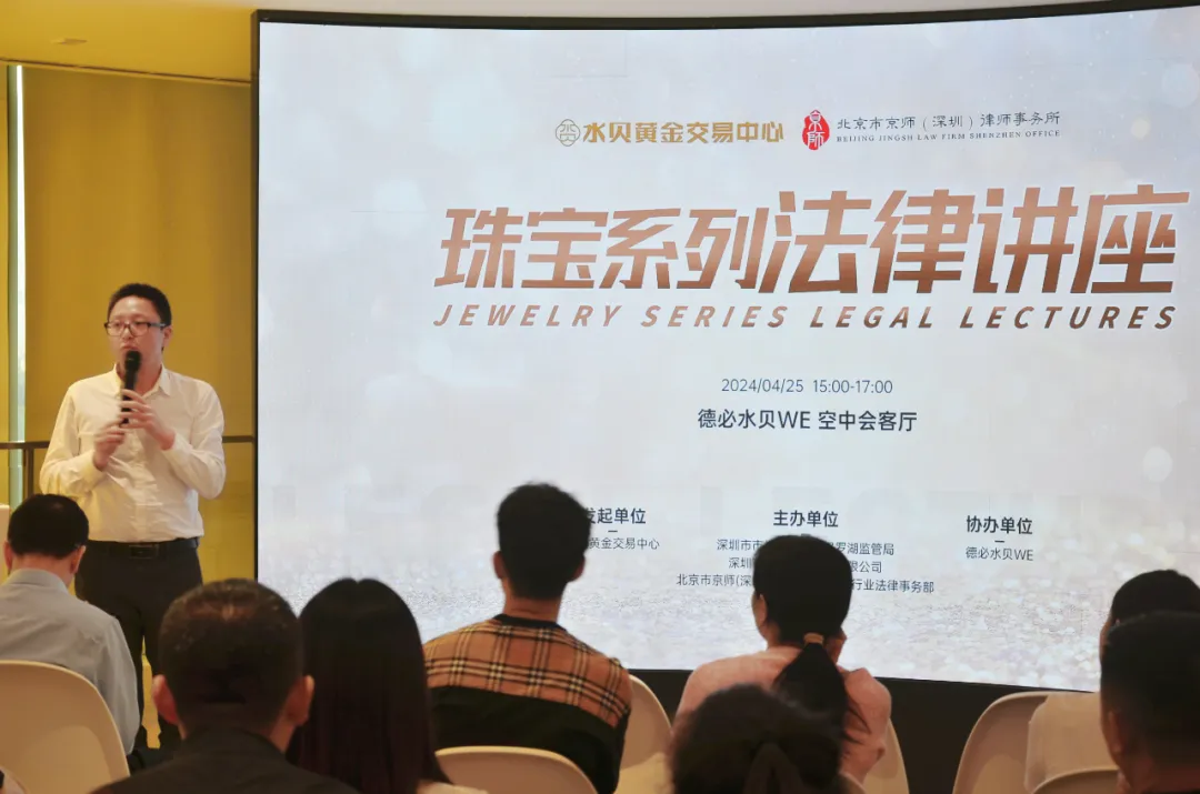 2024年4月25日,水貝黃金交易中心、深圳市市場監(jiān)督管理局羅湖監(jiān)管局、深圳市水貝珠寶集團(tuán)有限公司、北京市京師(深圳)律師事務(wù)所珠寶行業(yè)法律事務(wù)部于羅湖區(qū)布心路3008號IBC環(huán)球商務(wù)中心A座6樓德必水貝WE空中會客廳舉辦珠寶系列法律講座。
