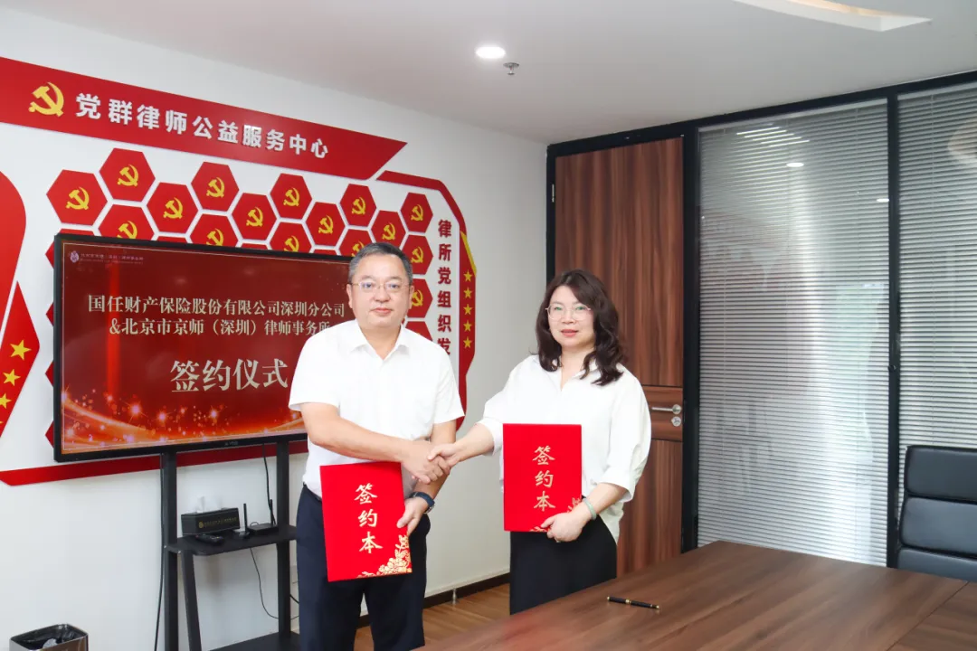 相信在雙方資源的高效整合、優(yōu)勢互補的有力支撐下,京師深圳律所與國任財產(chǎn)保險股份有限公司深圳分公司將攜手探索新的服務(wù)模式和市場機會,有效提升在各自領(lǐng)域的競爭力和服務(wù)水平,共同推動法律服務(wù)與保險服務(wù)行業(yè)的健康發(fā)展。