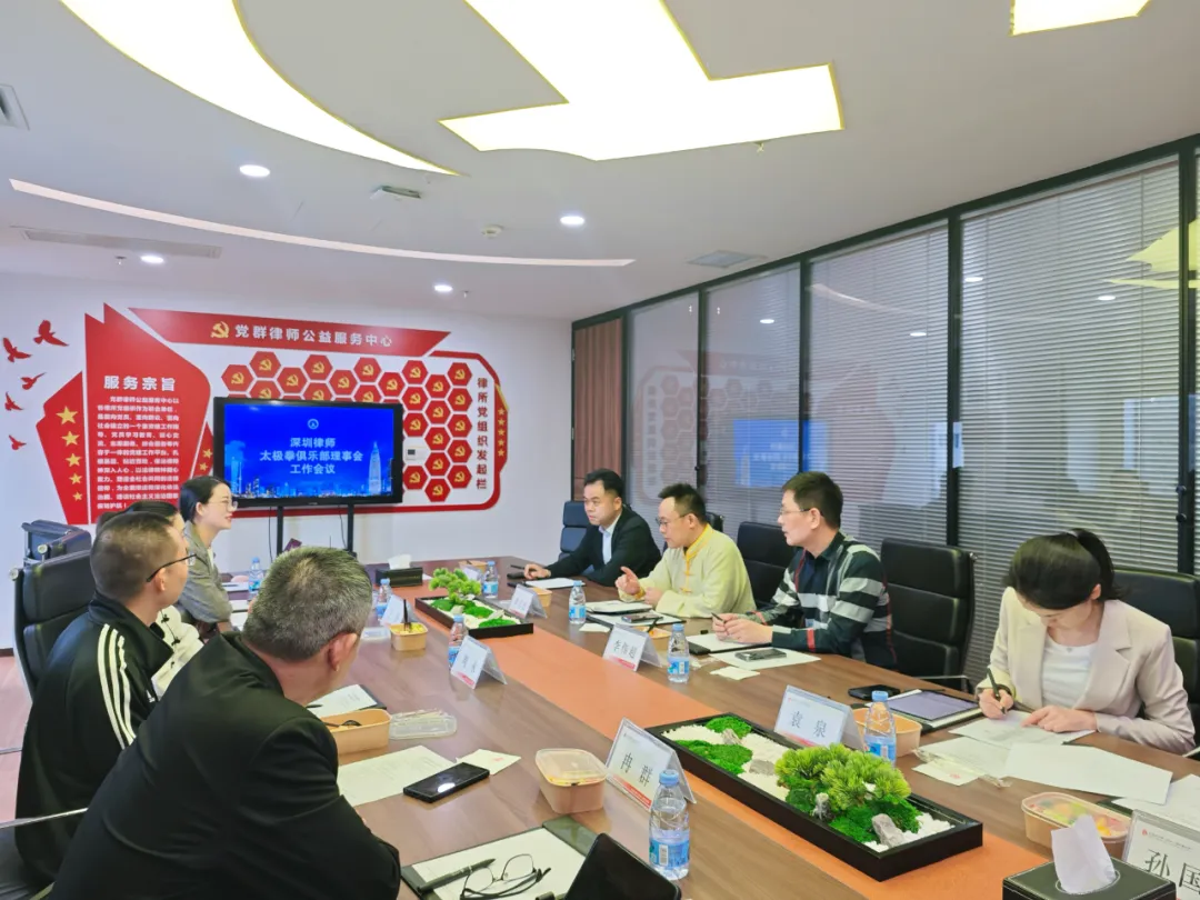 3月1日下午,深圳律師太極拳俱樂部第二屆理事會會議在北京市京師(深圳)律師事務(wù)所召開,市律協(xié)副會長章成、市律協(xié)文體福利委秘書長鄧鳳英、太極拳俱樂部主席李志忠、理事長李偉超、理事冉群、王靜、周永、袁泉、秘書處工作人員黃錦涵參加了會議,本次會議由俱樂部秘書長王靜主持。