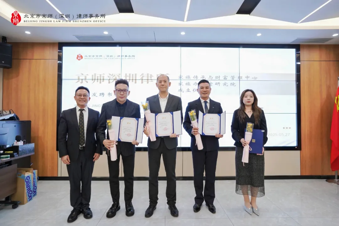 經(jīng)京師深圳律所聯(lián)合創(chuàng)始人、首席合伙人陳旭明主任的統(tǒng)籌領(lǐng)導(dǎo),其他四位聯(lián)合創(chuàng)始人劉運(yùn)嬌主任、康雪崧主任、李志忠主任、張楓主任的大力支持和認(rèn)真籌備,2025年5月27日,京師深圳律所舉行了"家族傳承與財富管理中心"暨"家族辦公室研究院"成立儀式。