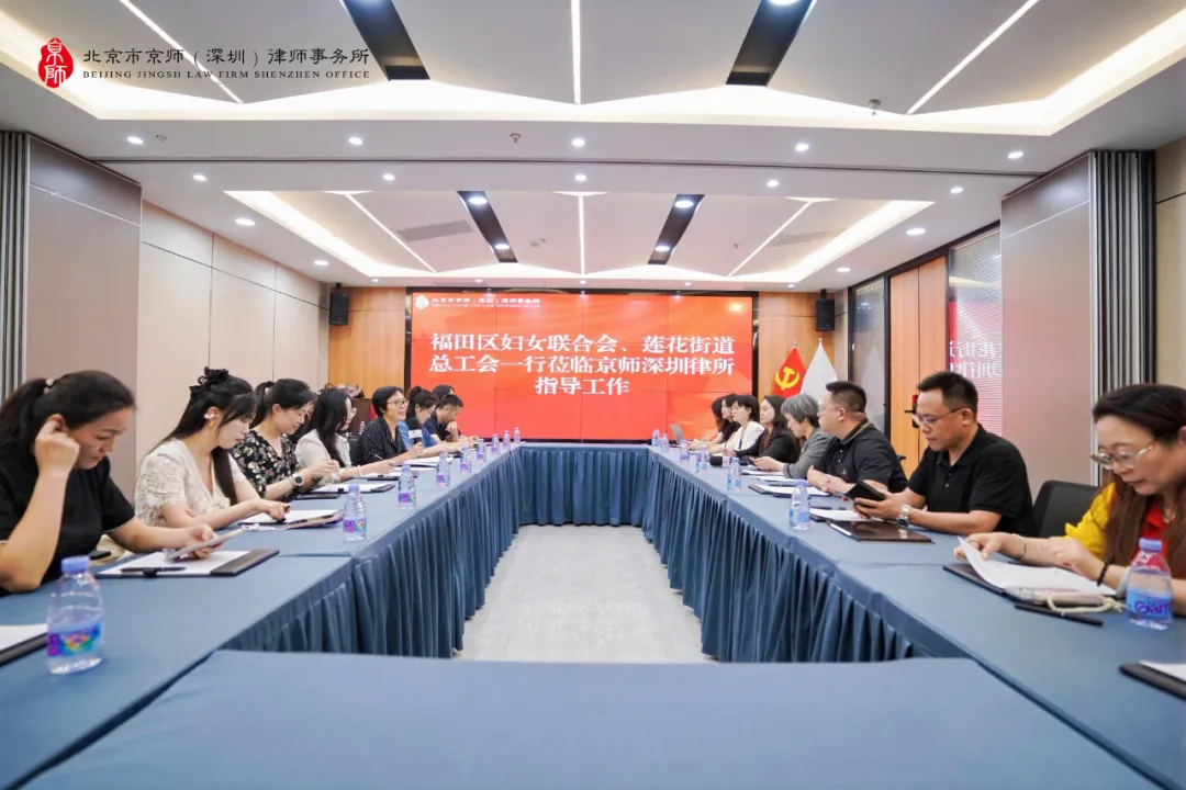 2025年7月4日下午,深圳市福田區(qū)婦女聯(lián)合會(huì)四級(jí)調(diào)研員陳東曉、福田區(qū)婦兒工委辦負(fù)責(zé)人楚銳,蓮花街道工會(huì)主席、婦聯(lián)主席吳眉,蓮花街道婦聯(lián)副主席劉婷婷 、蓮花街道彩虹社區(qū)主辦崗劉邵鵬等領(lǐng)導(dǎo)一行蒞臨京師深圳律所指導(dǎo)交流。京師深圳律所黨委書記、工會(huì)主席、聯(lián)合創(chuàng)始人羅建斌,京師深圳律所婦聯(lián)主席、聯(lián)合創(chuàng)始人劉運(yùn)嬌、律所聯(lián)合創(chuàng)始人李志忠、律所高級(jí)合伙人韓菲、律所婦聯(lián)副主席容韻雅、律所執(zhí)行副主任徐妍妮、律所戰(zhàn)略運(yùn)營(yíng)部總監(jiān)張玲、律所黨群辦主管李玉丹對(duì)到訪領(lǐng)導(dǎo)一行表示熱烈歡迎。