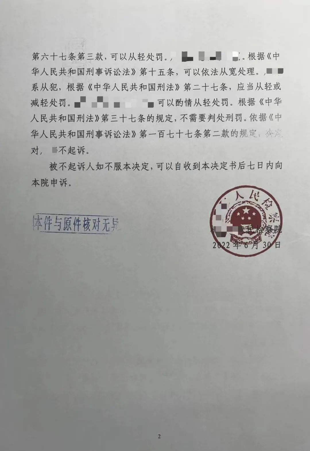 北京市京師(深圳)律師事務所龔國強律師、王丹丹律師、托婭律師團隊收到了來自檢察院的好消息,他們共同辦理的涉嫌開設賭場罪重大刑事案件,成功為當事人爭取到了不起訴的決定書。