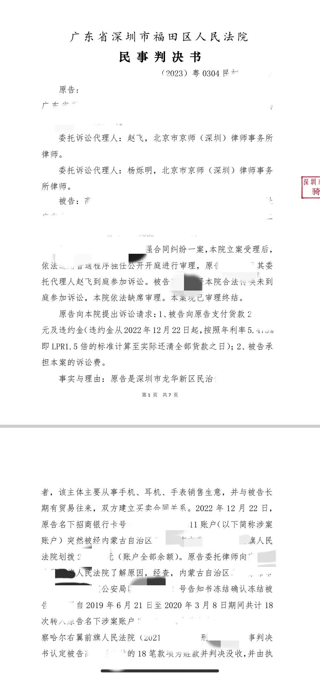 在一起涉及異地公安凍結(jié)的資金被劃扣的復(fù)雜法律案件中,經(jīng)過(guò)委托京師深圳律所楊爍明律師、趙飛律師處理,通過(guò)固定證據(jù)并提起訴訟,最終法院判決要求支付貨款和違約金,成功追回了被凍結(jié)劃扣的資金。這一判決為當(dāng)事人帶來(lái)了實(shí)質(zhì)性的正義,也為類(lèi)似案件提供了具有專(zhuān)業(yè)性與可操作性的參考。