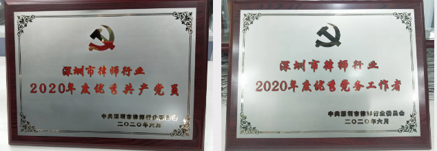 會議傳達了深圳市律師行業(yè)2020年度“七·一” 表彰先進基層黨組織和個人的決定: