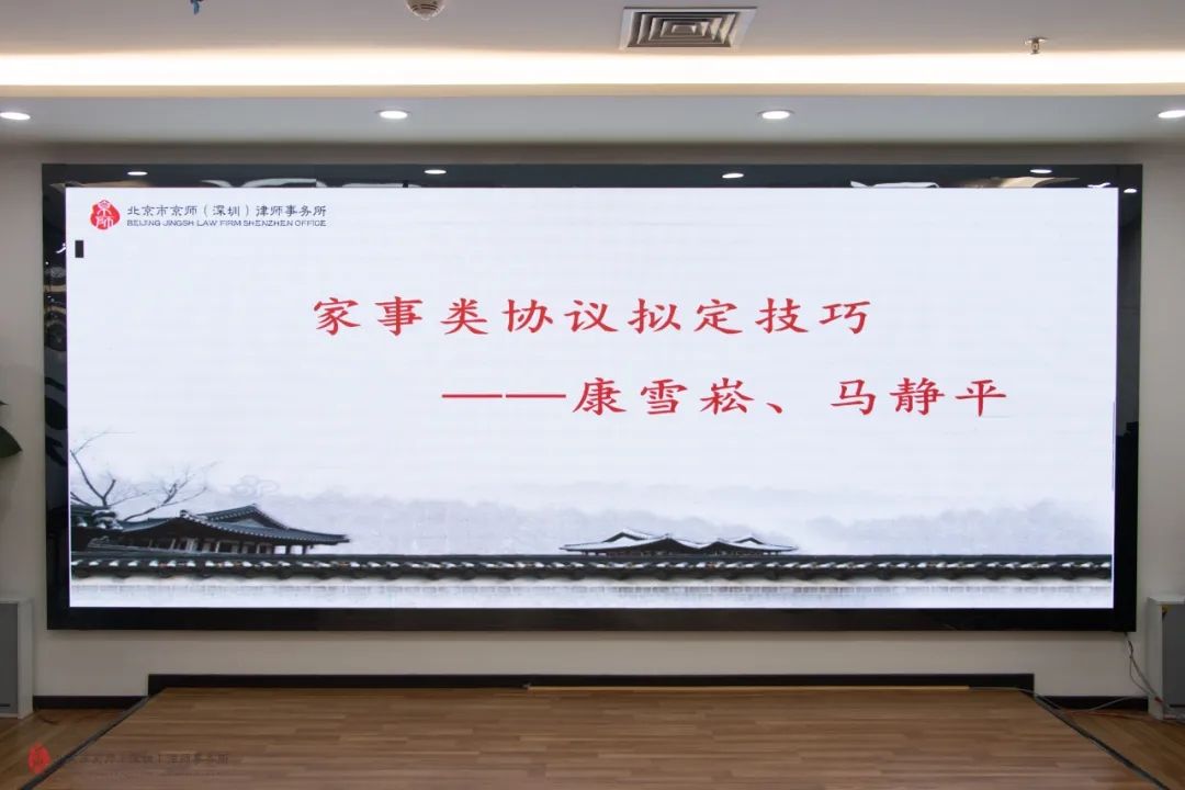為加強(qiáng)京師深圳律所律師對(duì)家事類協(xié)議擬定技巧的學(xué)習(xí),2021年7月23日,京師深圳律所開展《家事類協(xié)議擬定技巧》講座,邀請(qǐng)到京師深圳律所婚姻家事法律事務(wù)部主任康雪崧、副主任馬靜平擔(dān)任講師。