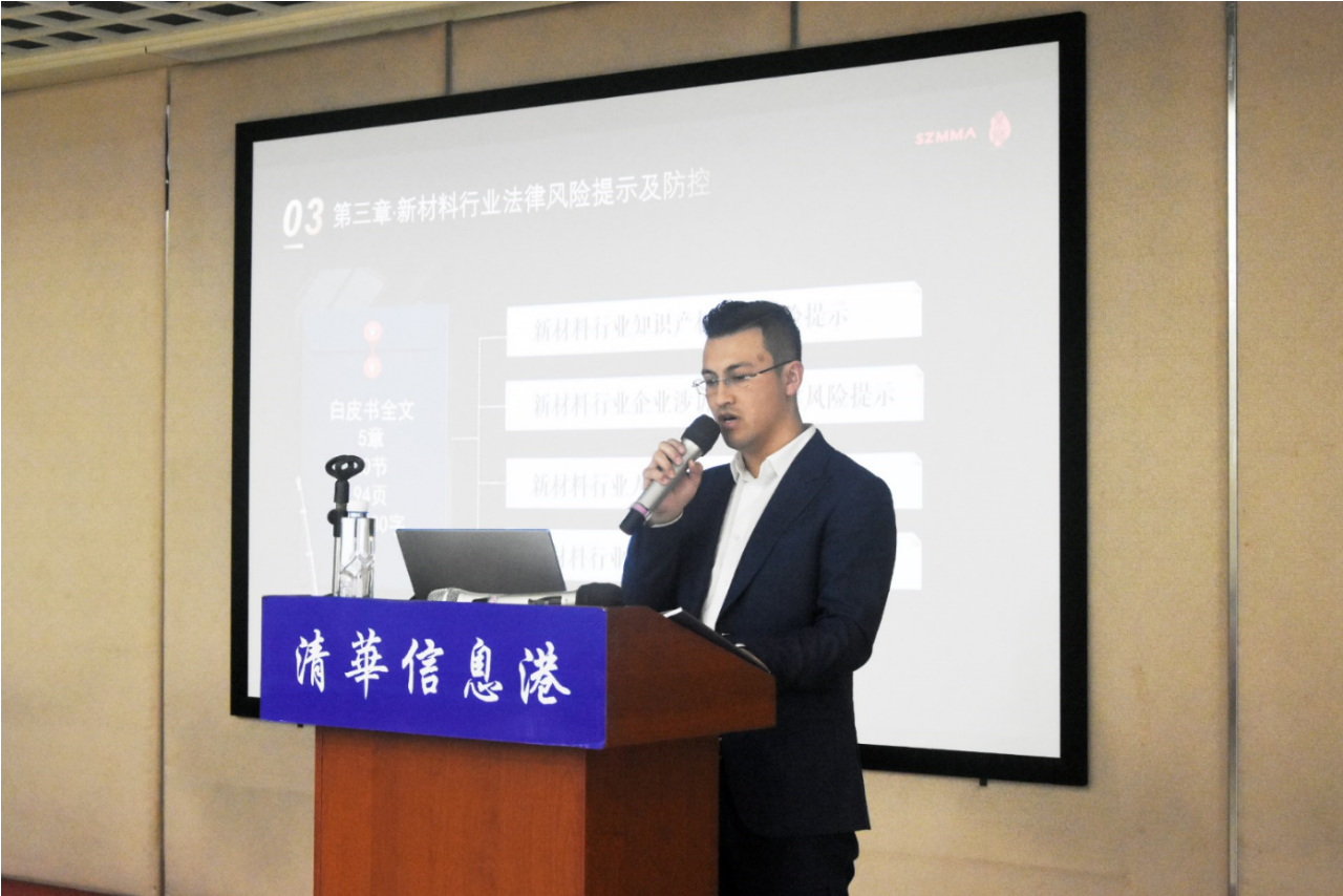 隨后,深圳市新材料行業(yè)秘書長李音介紹,《白皮書》不僅是一本集新材料行業(yè)重點案例與法律風險防控為一體的行業(yè)法律指南。其采用特色的“1加2”模式,是法律風險防控與政策匯編、法律法規(guī)匯編的結合,希望協(xié)會秘書處利用該《白皮書》為協(xié)會會員單位提供更加全面綜合的服務。