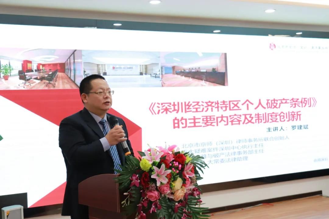 作為《個人破產(chǎn)條例》立法過程的參與者之一,羅建斌主任帶來《深圳經(jīng)濟特區(qū)個人破產(chǎn)條例》的主要內(nèi)容及制度創(chuàng)新主題演講,結(jié)合參與立法的經(jīng)驗和感受,解讀了《深圳經(jīng)濟特區(qū)個人破產(chǎn)條例》的主要內(nèi)容及制度創(chuàng)新,主要包括:適用對象、破產(chǎn)程序、程序的銜接與轉(zhuǎn)換、債務人行為限制、考察期、破產(chǎn)欺詐的處理、破產(chǎn)事務管理部門、個人破產(chǎn)案件管理人等方面的內(nèi)容。