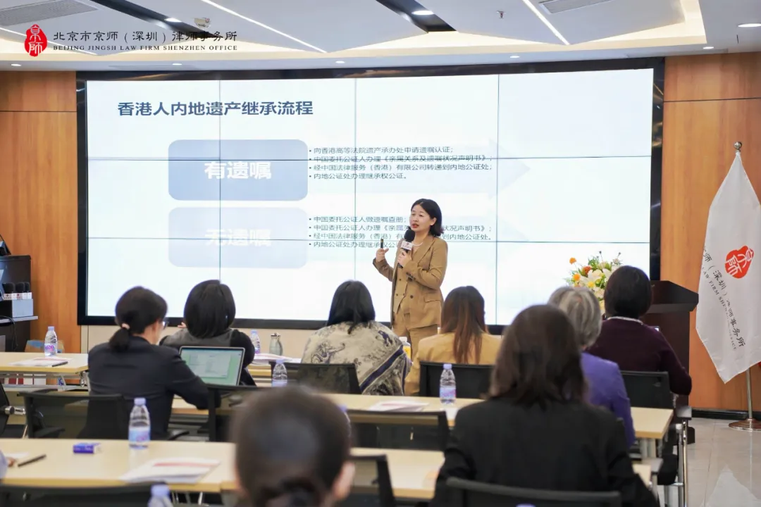 2025年12月24日下午,京師深圳律所舉行“深耕專業(yè)營”系列活動(dòng)第八期《涉港繼承全流程解析》專題講座,此次講座由京師深圳律所聯(lián)合創(chuàng)始人、婚姻家事法律事務(wù)部主任康雪崧律師主講?;顒?dòng)聚焦跨境繼承中的流程難點(diǎn)、風(fēng)險(xiǎn)規(guī)避及實(shí)務(wù)策略,通過“案例+流程+策略”三維解析,梳理辦理方法全流程,破解涉港繼承實(shí)操瓶頸,為律師同仁提供新的辦案思路。