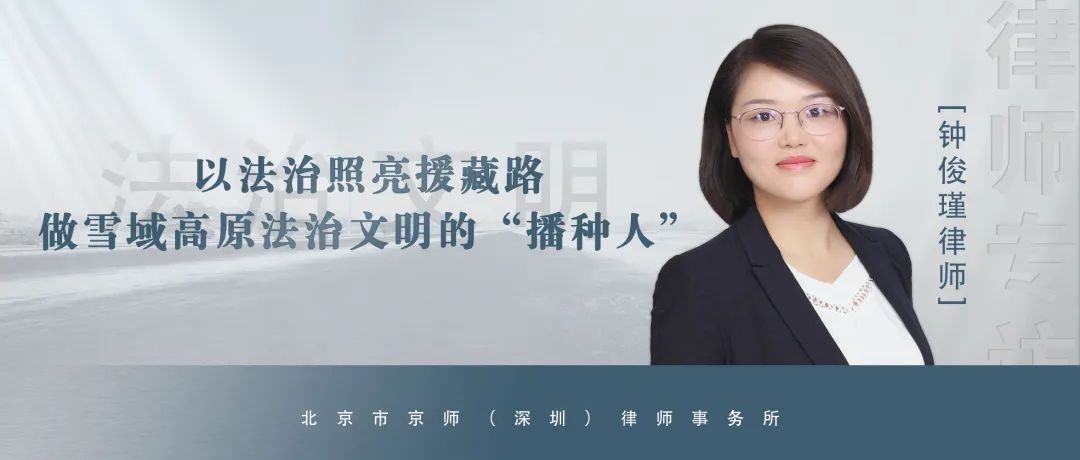 從2012年到2022年,深圳共計(jì)28位律師(累計(jì)63人次)參加了“1+1”中國(guó)法律援助志愿者行動(dòng),他們的足跡踏遍全國(guó)43個(gè)中西部偏遠(yuǎn)貧困地區(qū)。而北京市京師(深圳)律師事務(wù)所鐘俊瑾律師就是這雪域高原行路人之一,本期律師專訪邀請(qǐng)鐘俊瑾律師,談一談她連續(xù)兩年參與“1+1”中國(guó)法律援助志愿活動(dòng),以及她背后的援藏故事。