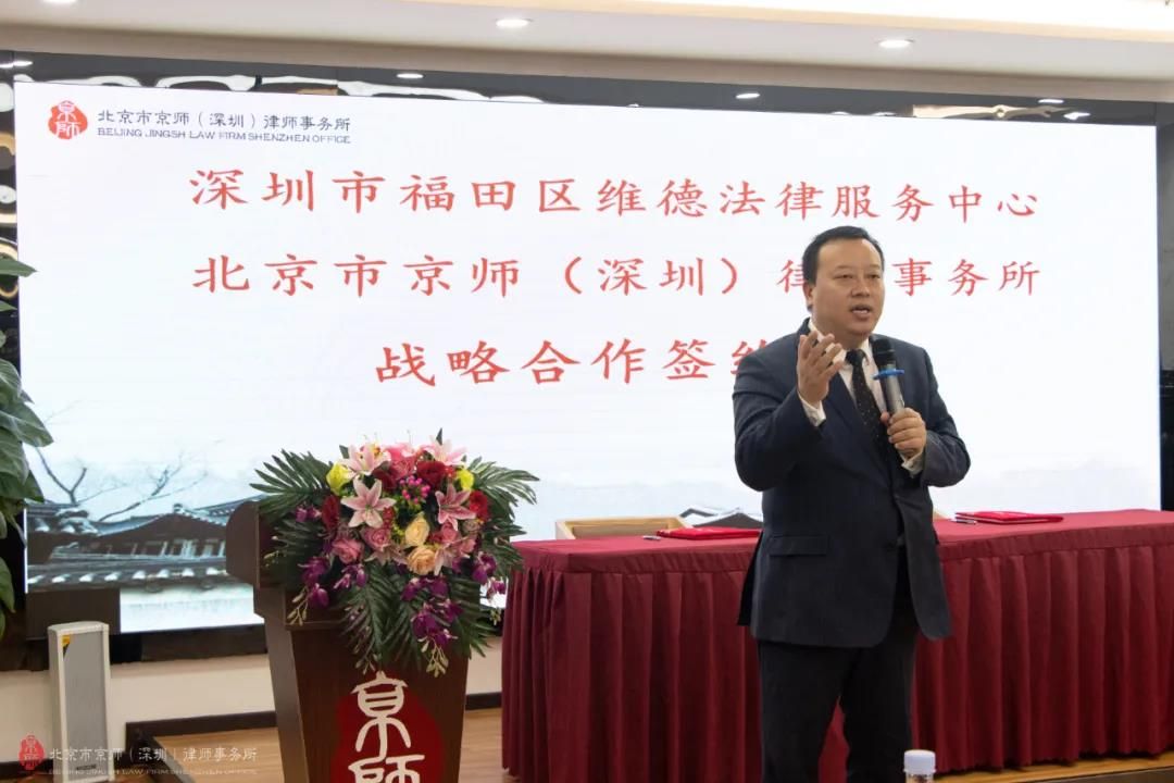 隨后,京師總部創(chuàng)始合伙人、京師深圳聯(lián)合創(chuàng)始人、主任邵雷雷表示,感謝各位律師對公益法律服務(wù)做出的貢獻(xiàn),各位律師積極參與公益普法行動,包括青少年普法以及提供法律援助等,在充實(shí)自身執(zhí)業(yè)生涯的同時(shí),助力了法治建設(shè),展現(xiàn)了京師擔(dān)當(dāng)。邵雷雷主任還表示,京師深圳未來將充分發(fā)揮與維德中心戰(zhàn)略合作的積極作用,進(jìn)一步助力完善公益法律服務(wù),盡京師深圳的力量做更多的公益法律事業(yè)。
