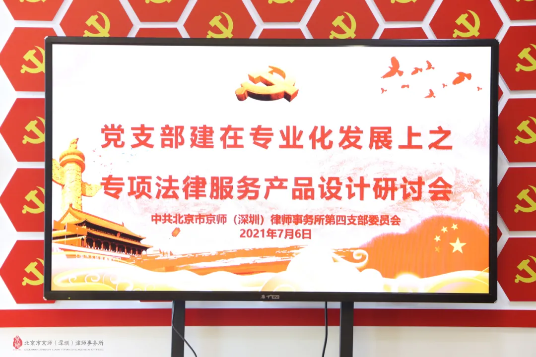 2021年7月6日,京師深圳律所第四黨支部開展有關(guān)專項(xiàng)法律服務(wù)產(chǎn)品設(shè)計(jì)第一次研討會(huì)。當(dāng)下,法律市場需求逐漸趨向?qū)I(yè)化、多元化、高效化和優(yōu)質(zhì)化,律師的專業(yè)化是贏得市場、贏得客戶的最有效路徑及方式。本次專項(xiàng)法律服務(wù)產(chǎn)品設(shè)計(jì)研討會(huì)主要目的在于探索黨支部專業(yè)化的發(fā)展方向,如何設(shè)計(jì)、研發(fā)專項(xiàng)法律服務(wù)產(chǎn)品,使得律師多年的執(zhí)業(yè)經(jīng)驗(yàn)可視化,服務(wù)可量化,讓專項(xiàng)法律服務(wù)對象能夠享受到具體的、優(yōu)質(zhì)的法律服務(wù)。
