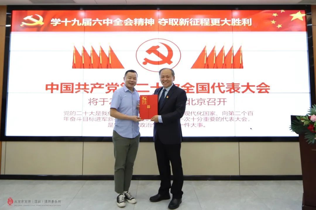 北京市京師(深圳)律師事務(wù)所黨委書記林冰同志、黨委組織委員陳修同志、黨建顧問蘇雁南同志、黨委統(tǒng)戰(zhàn)委員甘伍葉同志、黨委青工委員吳小潘同志、京師深圳律所執(zhí)行副主任王昉同志及其黨員干部一同參與。