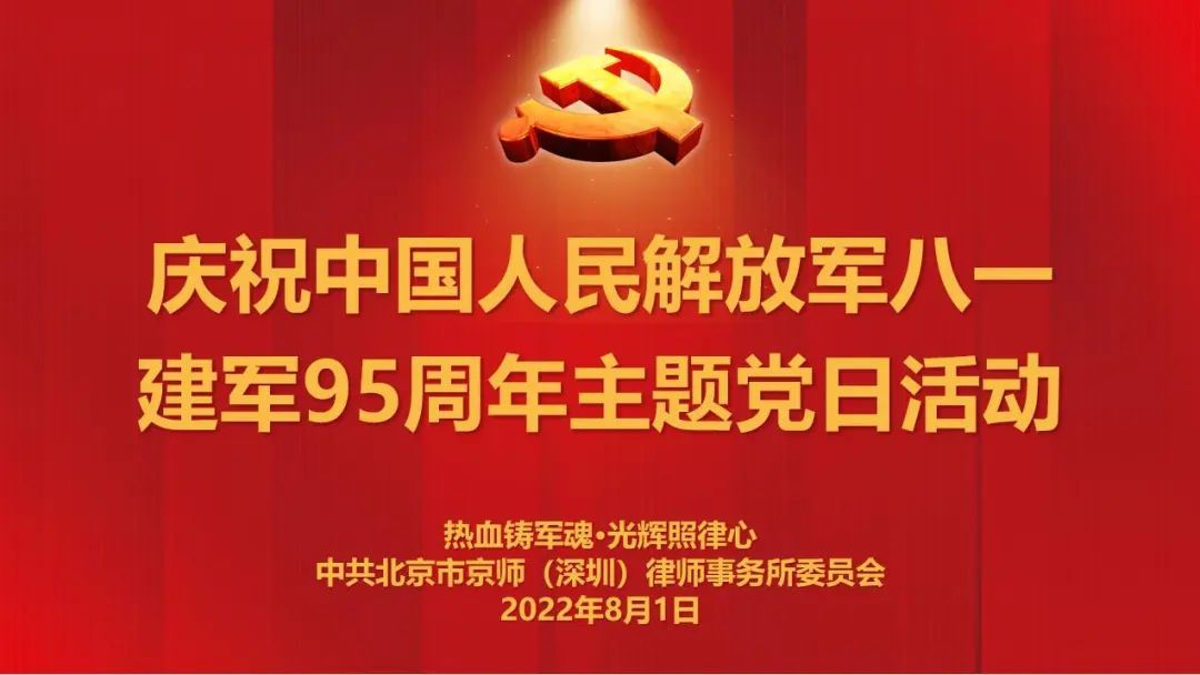 2022 年 8 月1 日,是中國人民解放軍建軍 95 周年,為弘揚(yáng)紀(jì)律嚴(yán)明、永不退縮、沖鋒在前、不怕困難的戰(zhàn)斗精神,創(chuàng)建一支為律師行業(yè)發(fā)展,為法治社會(huì)建設(shè)凝心聚力、保駕護(hù)航的人民律師隊(duì)伍,京師深圳律所黨委開展了“熱血鑄軍魂·光輝照律心”慶八一主題黨日活動(dòng)。 京師深圳律所黨委書記林冰同志;黨委副書記、紀(jì)委書記江澤利同志;黨委青工委委員、團(tuán)支部書記吳小潘同志;軍轉(zhuǎn)律師法律服務(wù)中心主任、為軍法律服務(wù)團(tuán)團(tuán)長孟長江同志以及律所軍轉(zhuǎn)律師、各黨支部黨員齊聚一堂,共同慶祝這意義非凡的節(jié)日。 活動(dòng)上,全體參會(huì)人員齊唱國歌、軍歌《強(qiáng)軍戰(zhàn)歌》,回憶軍旅生涯,喚醒紅色底蘊(yùn),激發(fā)戰(zhàn)斗意志,不忘初心與使命。雖脫下了軍裝,但軍心仍然熾烈。