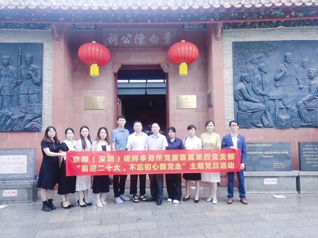 2022年8月12日,為深入開展黨史學(xué)習(xí)教育,探尋身邊紅色印記,中共北京市京師(深圳)律師事務(wù)所委員會(huì)直屬第四黨支部(下稱“第四黨支部”)支部書記胡青林同志、組織委員趙琳琳同志、宣傳委員肖莉同志牽頭組織全體黨員、預(yù)備黨員赴廣東省深圳市素白陳公祠參觀學(xué)習(xí)。本次活動(dòng)還有紀(jì)委副書記涂重信同志蒞臨指導(dǎo)。 素白陳公祠 素白陳公祠位于深圳市寶安區(qū)松崗街道燕川社區(qū)107號(hào)-108號(hào)之間。矗立于寶安區(qū)燕羅街道鬧市之中的清代建筑素白陳公祠,墻上掛著的中共寶安縣第一次代表大會(huì)(1928)紀(jì)念館、深圳市黨員教育基地、深圳市寶安區(qū)廉政教育基地等匾牌,昭示出它講述著一段光榮而偉大的歷史。其中,中共寶安縣第一次黨員代表大會(huì)在現(xiàn)燕羅街道燕川社區(qū)素白陳公祠內(nèi)秘密召開,到會(huì)代表19人。這次大會(huì)通過了《提案大綱》,決定重新整頓各級(jí)黨組織,進(jìn)一步發(fā)展黨員;加強(qiáng)宣傳工作,創(chuàng)辦農(nóng)民學(xué)校、夜校,翻印《紅旗》《布爾什維克》等黨內(nèi)刊物及各種宣傳品;開展農(nóng)民運(yùn)動(dòng),成立士兵委員會(huì)和工人運(yùn)動(dòng)委員會(huì);進(jìn)行土地革命,開展抗租、抗捐、抗稅斗爭。據(jù)介紹,此次會(huì)議是建國前中共寶安縣地區(qū)黨組織召開的第一次也是唯一一次黨代會(huì),在深圳黨史上占據(jù)極為重要的地位。 參觀過程中,全體黨員在胡青林同志的帶領(lǐng)下重溫入黨誓詞,以鏗鏘有力的誓言,讓黨員們深刻銘記自己的使命,時(shí)刻以共產(chǎn)黨員的標(biāo)準(zhǔn)嚴(yán)格要求自己、時(shí)刻以黨員的先進(jìn)性鞭策激勵(lì)自己。 在中共寶安縣第一次黨員代表大會(huì)教育基地里,基地一樓,黨員們回顧了我黨的誕生、大革命和土地革命戰(zhàn)爭時(shí)期、抗日戰(zhàn)爭和解放戰(zhàn)爭時(shí)期等不同歷史時(shí)期。中國共產(chǎn)黨在寶安縣的艱苦奮斗,讓黨員同志們不禁感嘆如今幸福生活的來之不易。更加堅(jiān)定了黨員們奉獻(xiàn)社會(huì)、服務(wù)社會(huì)的決心和信心。 基地二樓是“黨史穿越門”和生動(dòng)形象的VR體驗(yàn)區(qū)。通過這扇門,讓黨員同志們能夠在復(fù)原的場景中,深度感受與學(xué)習(xí)黨的發(fā)展軌跡。黨員同志積極參與展館中的紅色小游戲,不僅增加了黨員同志們之間的感情,而且讓黨員同志們身臨其境地感受黨建百年歷程,使黨員同志們?cè)诟袆?dòng)與感悟中傳承紅色基因。 素白陳公祠是寶安紅色記憶的開始,如今已成為深圳市黨史教育基地、深圳市黨員教育基地、深圳市愛國主義教育基地、深圳市紅色革命遺址、寶安區(qū)廉政教育基地、寶安區(qū)青少年愛國主義教育基地。 通過這次參觀學(xué)習(xí),全體黨員深切體會(huì)到黨的艱辛奮斗歷程與偉大奮斗歷史,傳承紅色文化。今后,在律所工作上,各位黨員要發(fā)揮好黨員的先鋒模范作用,不忘初心,砥礪前行,不斷學(xué)習(xí)。