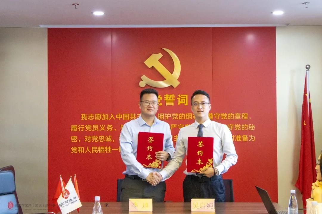 隨后,京師深圳律所第一黨支部書記吳啟純與AI機器時代總裁洪雨、深圳春航商貿(mào)李逵達成深度合作,雙方達成高度共識,為日后相互合作指明方向,雙方簽訂戰(zhàn)略合作協(xié)議,以黨建為基點,進一步拓展業(yè)務合作。